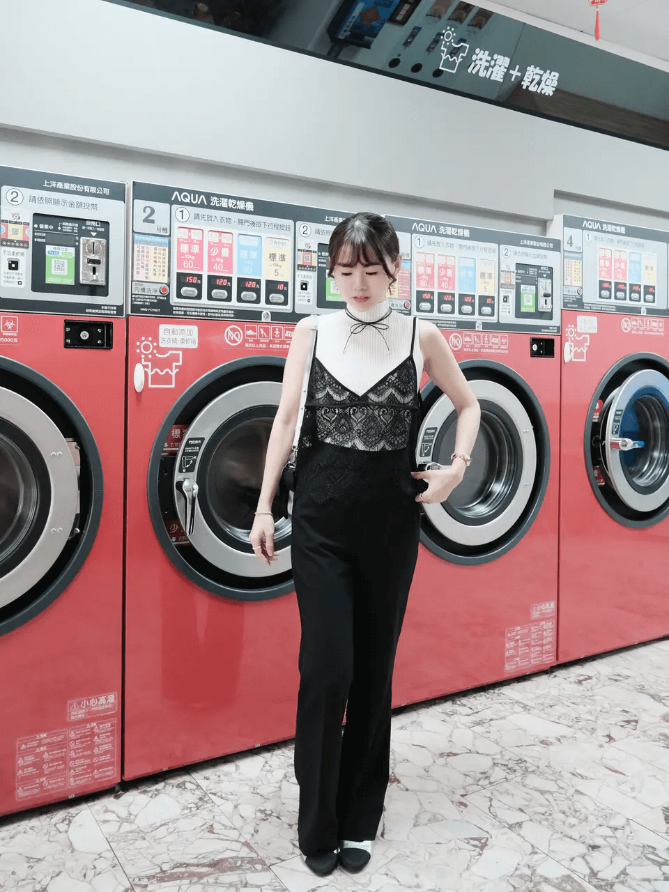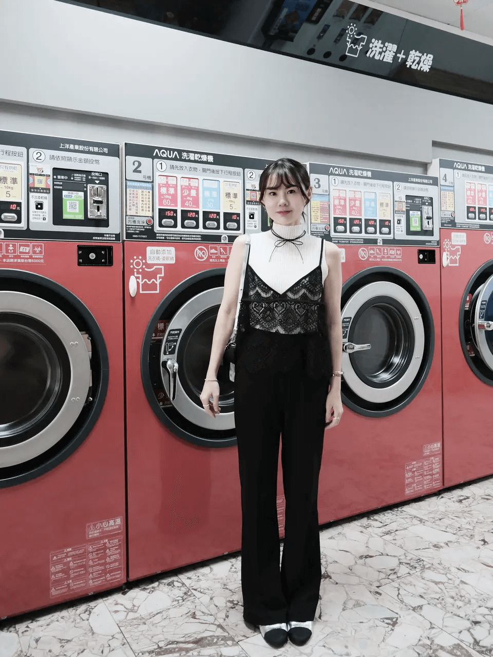 Moni用這件坑條小高領搭配法式睫毛蕾絲吊帶背心,把穿搭提昇到另一個層次。
