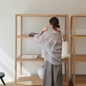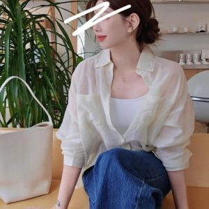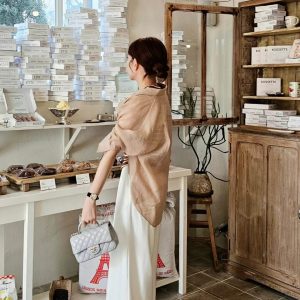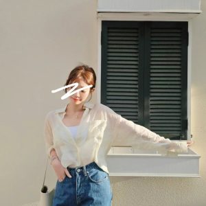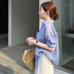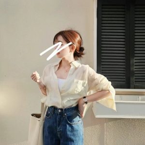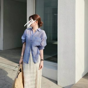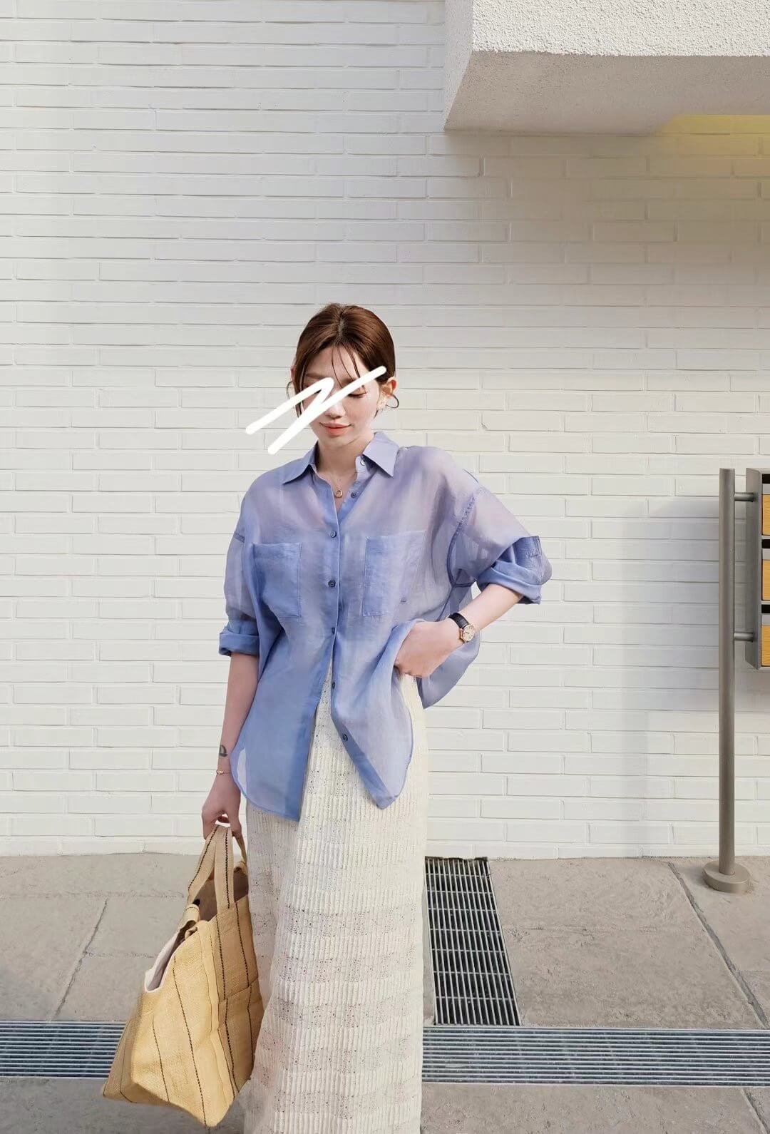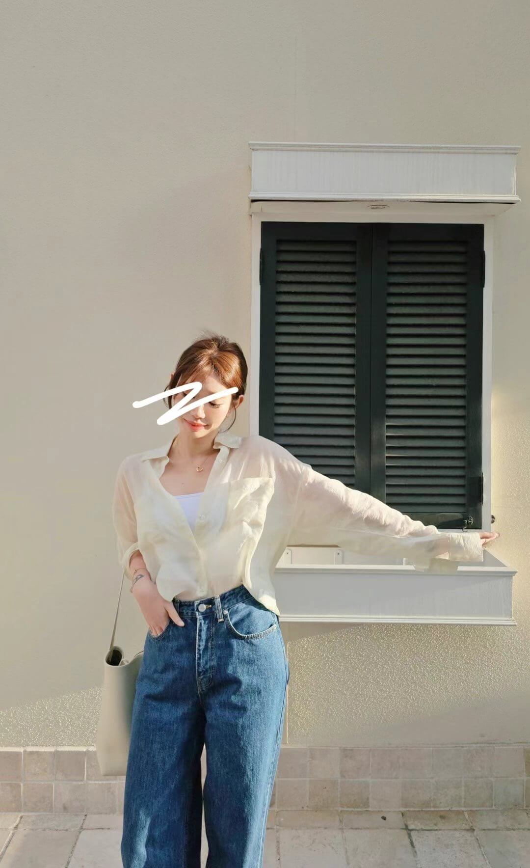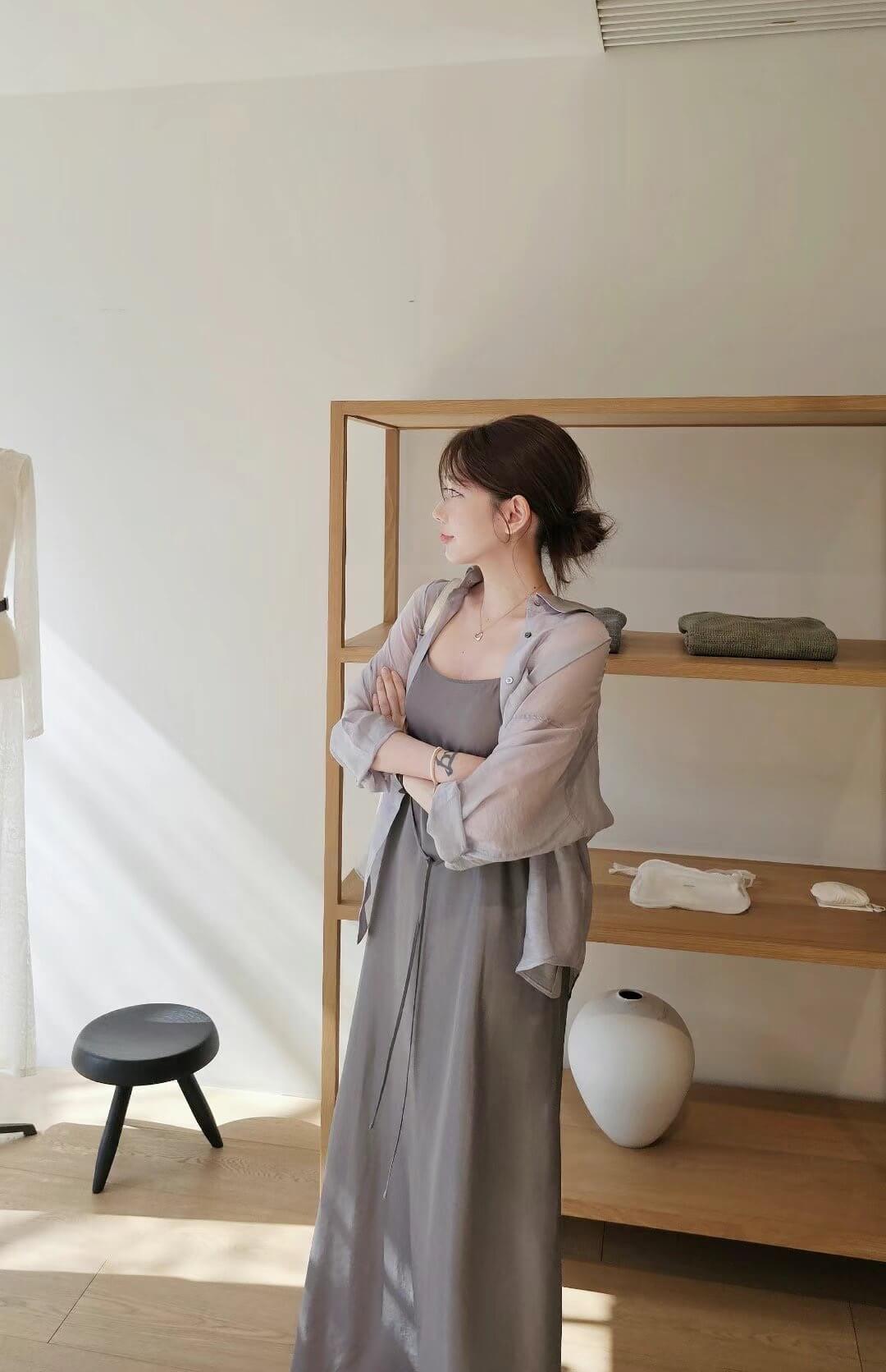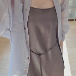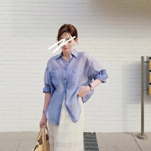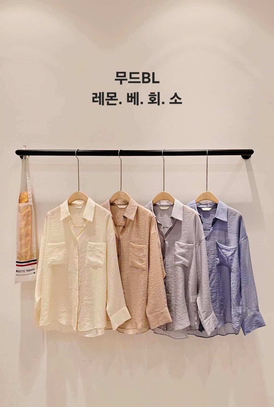 襯衫的布料帶有微皺的紋理感和霧霧的光澤