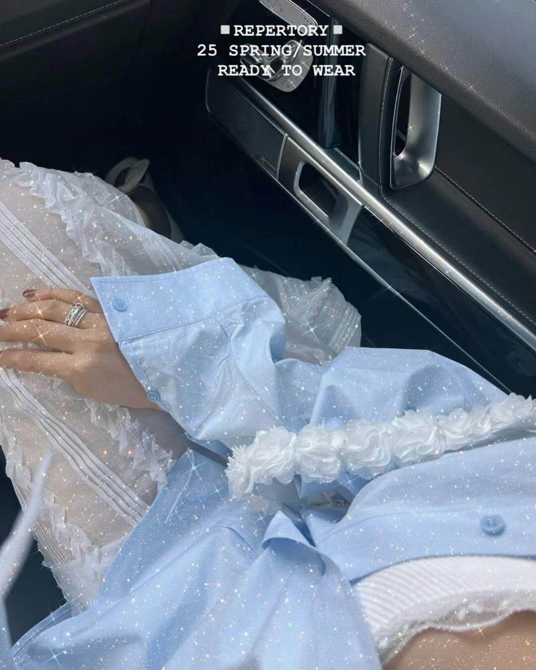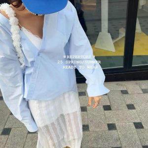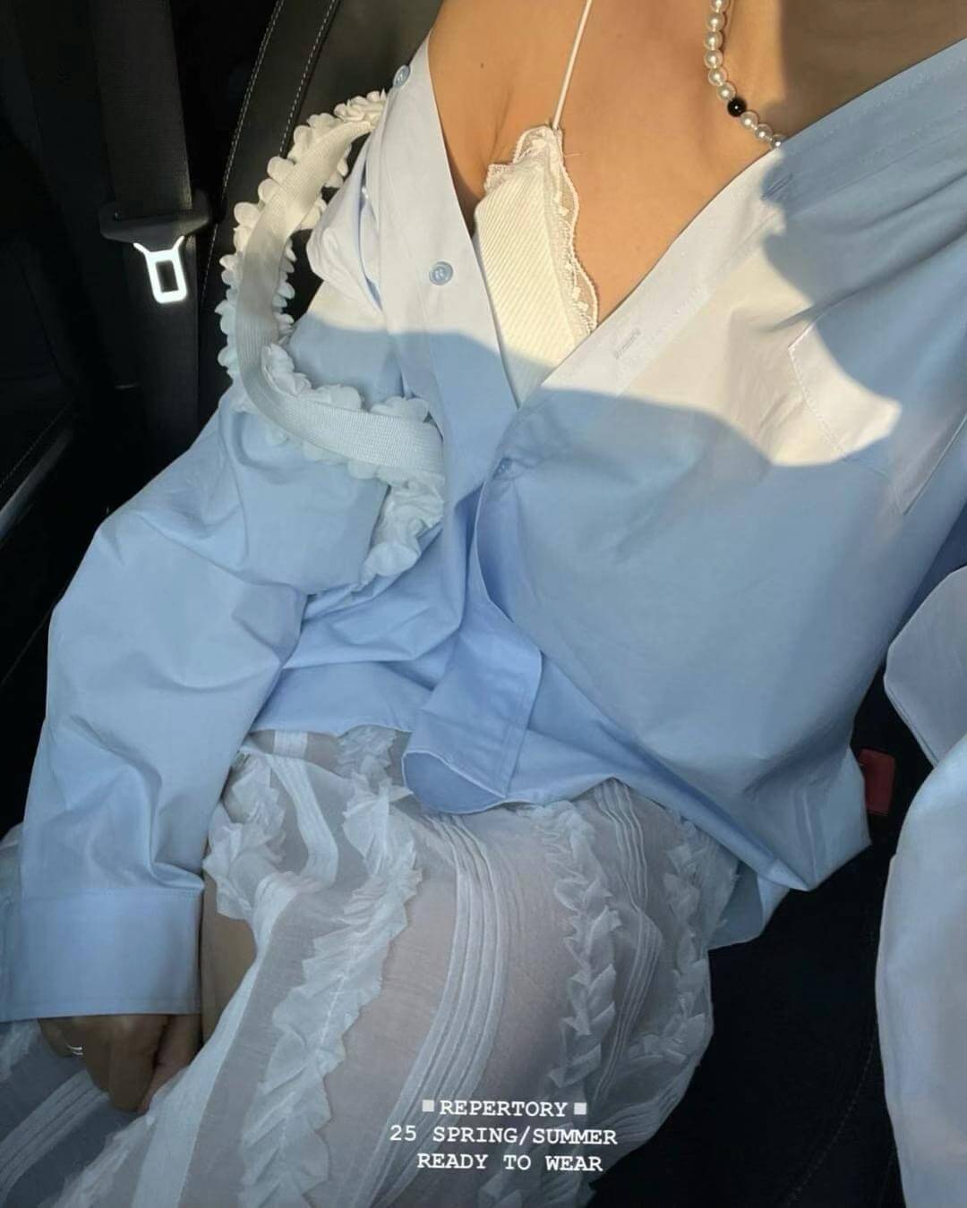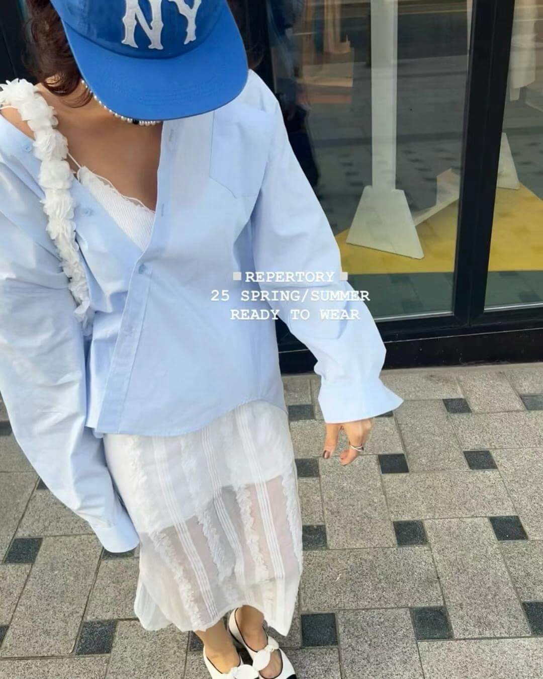 裙子布料微透但有內裡,側邊有開岔,行走時不經意露出小腿,給人不過份的小性感。