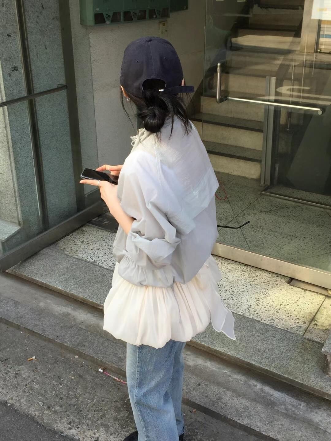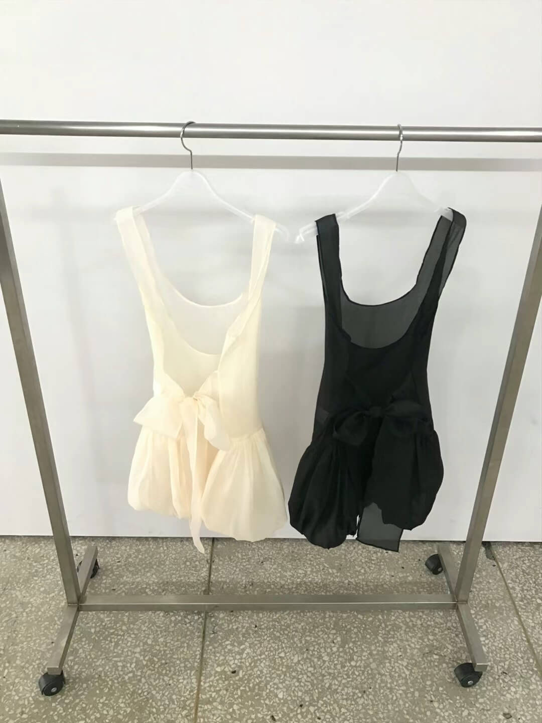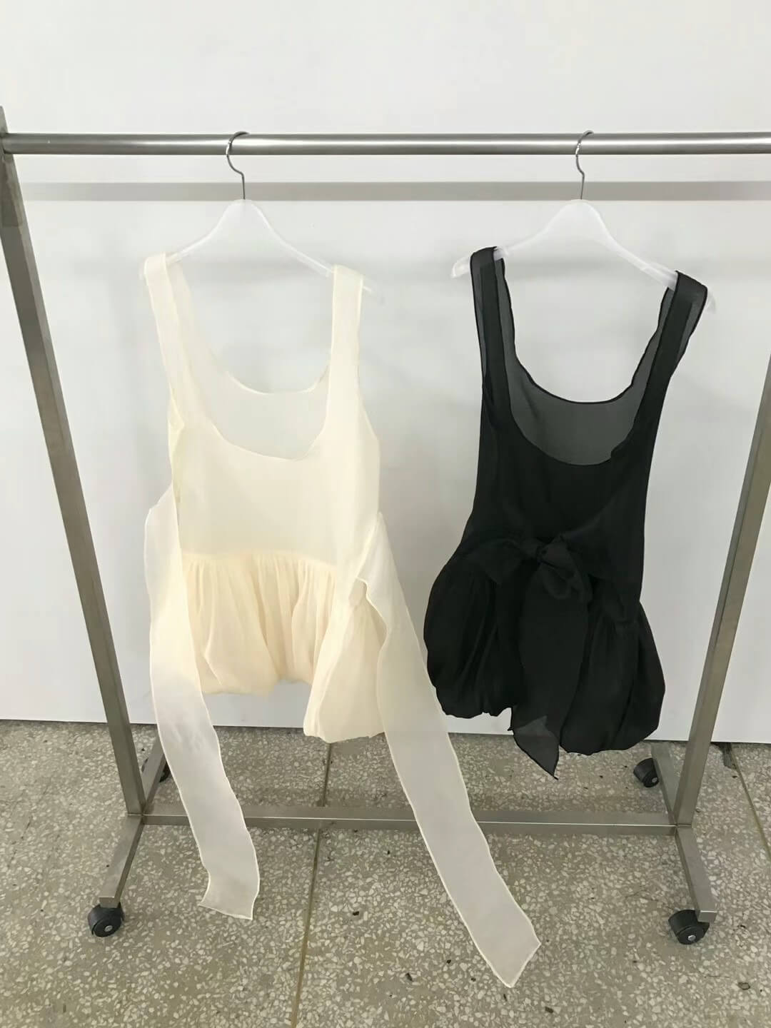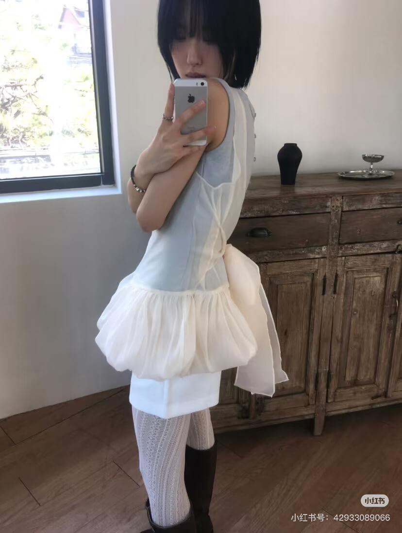 使用輕透且帶有光澤感的歐根紗所縫製而成