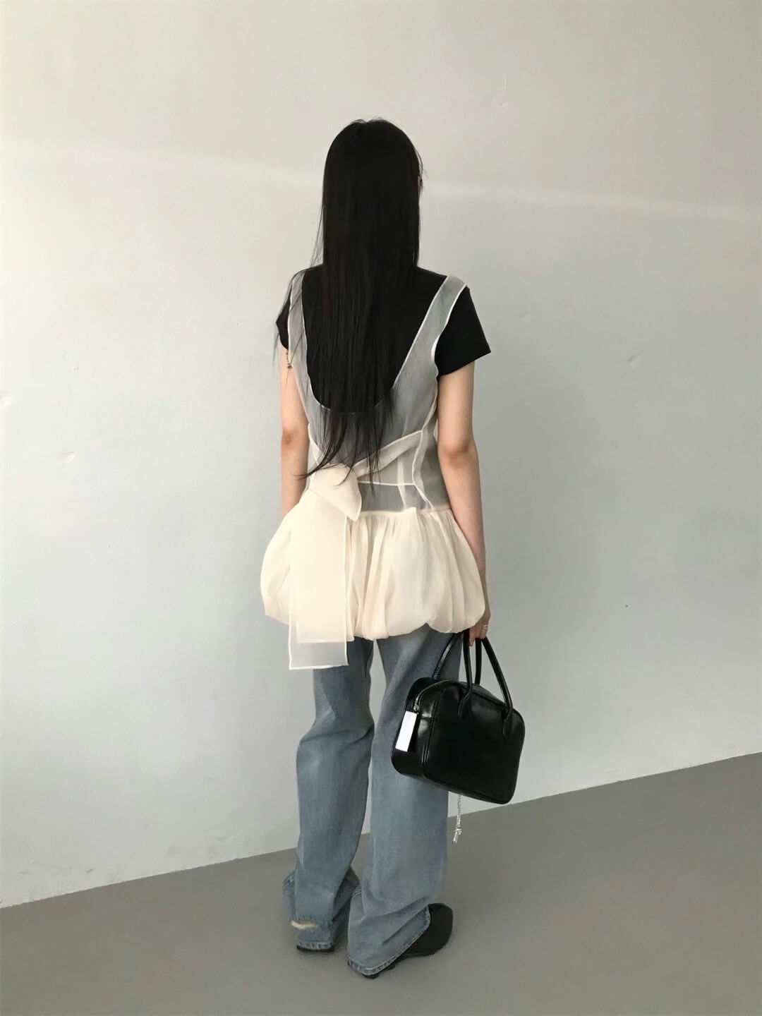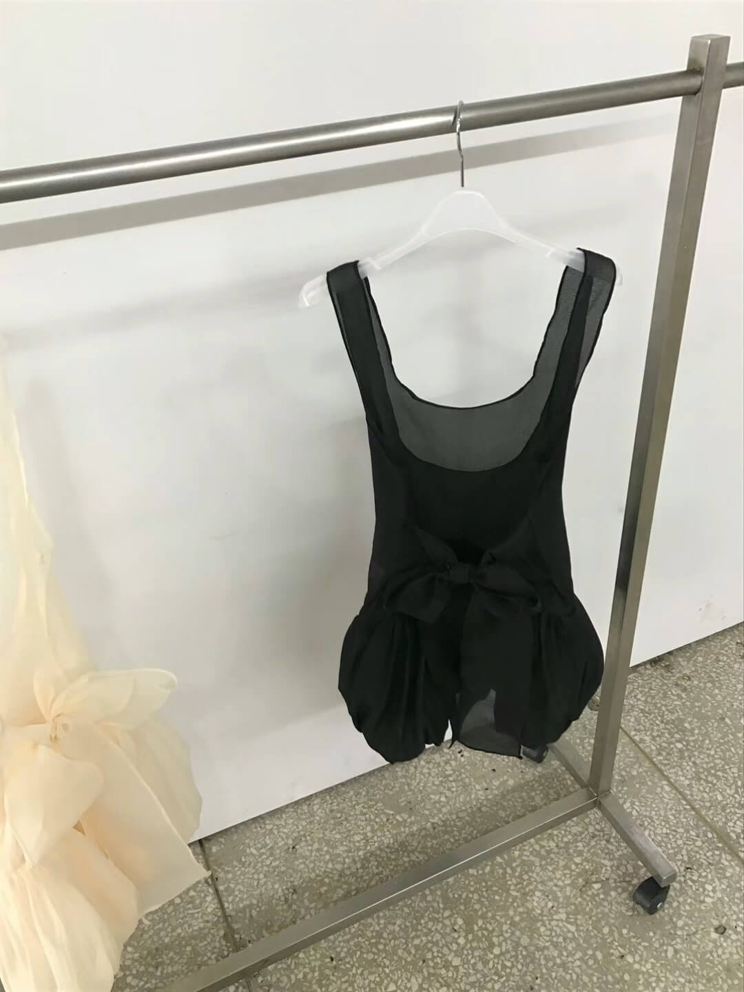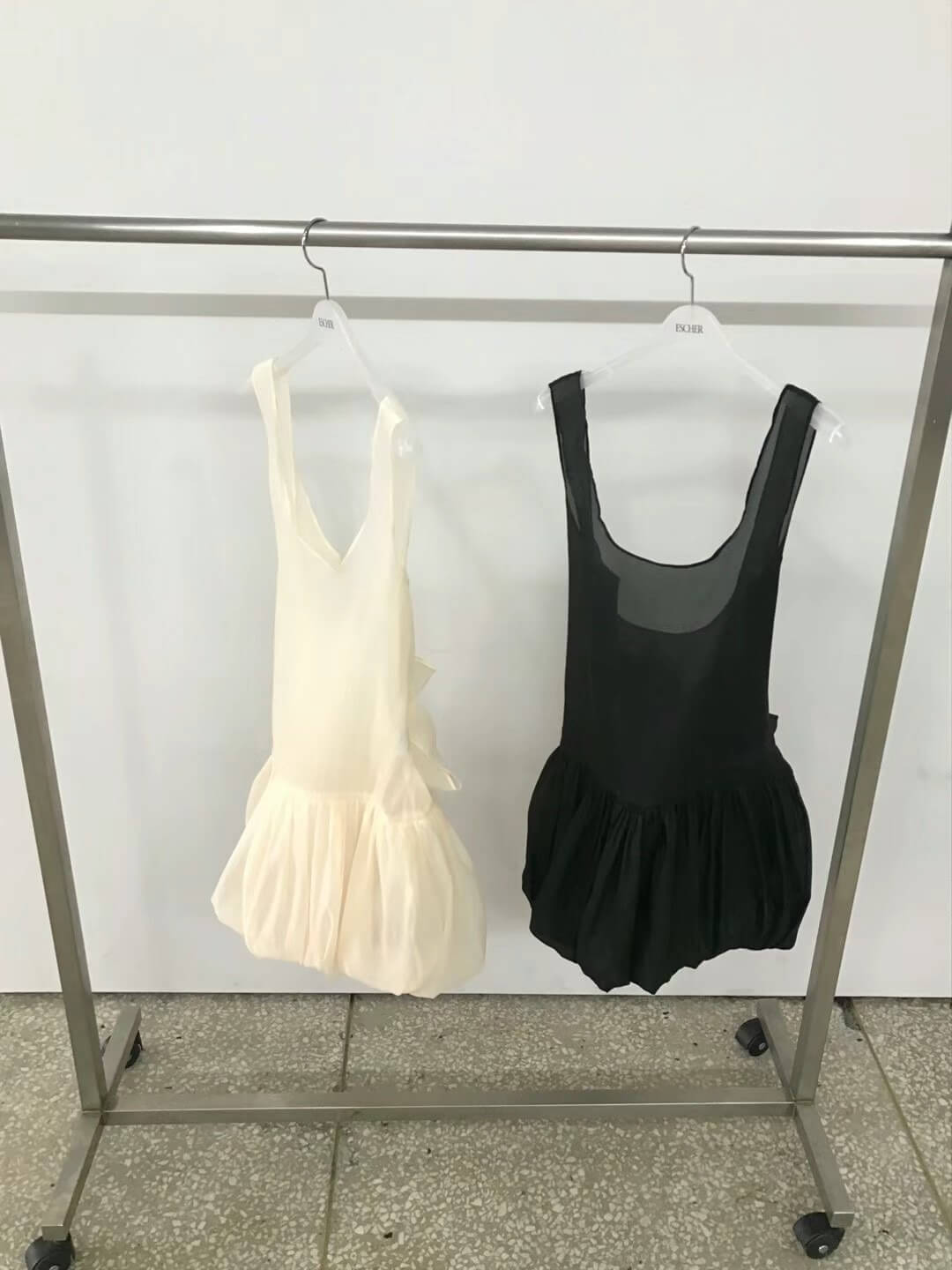 使用輕透且帶有光澤感的歐根紗所縫製而成