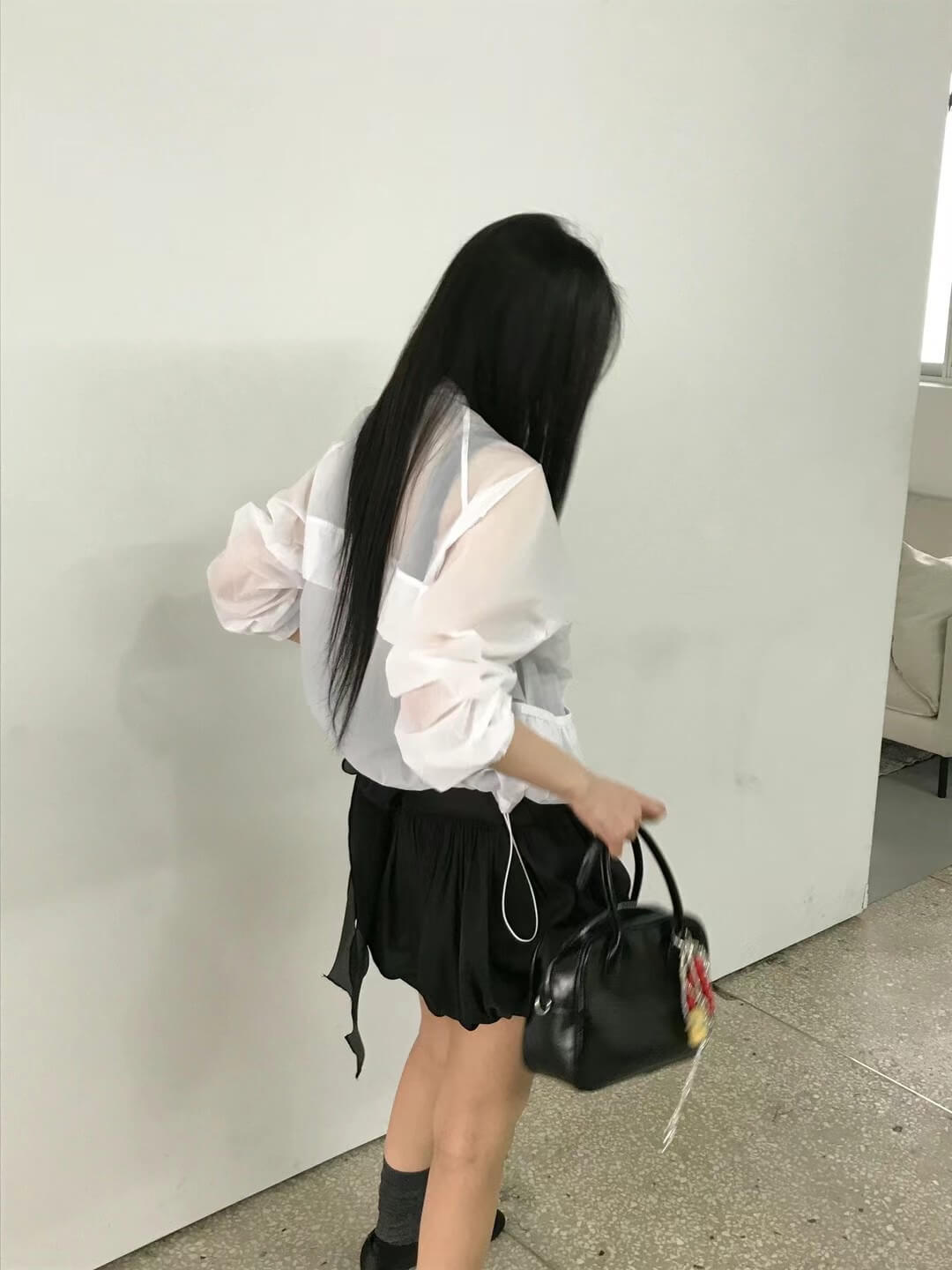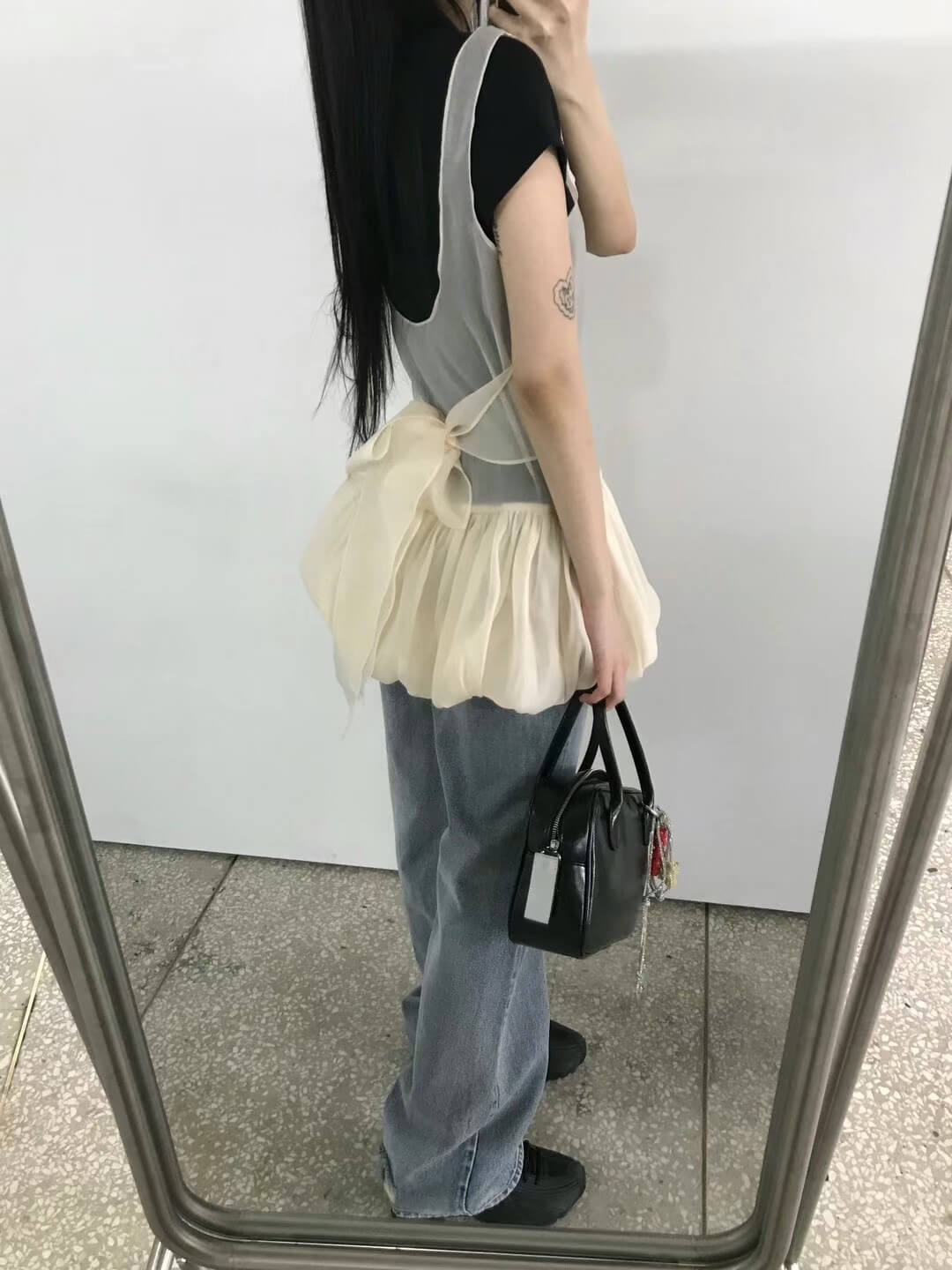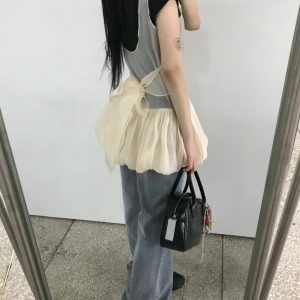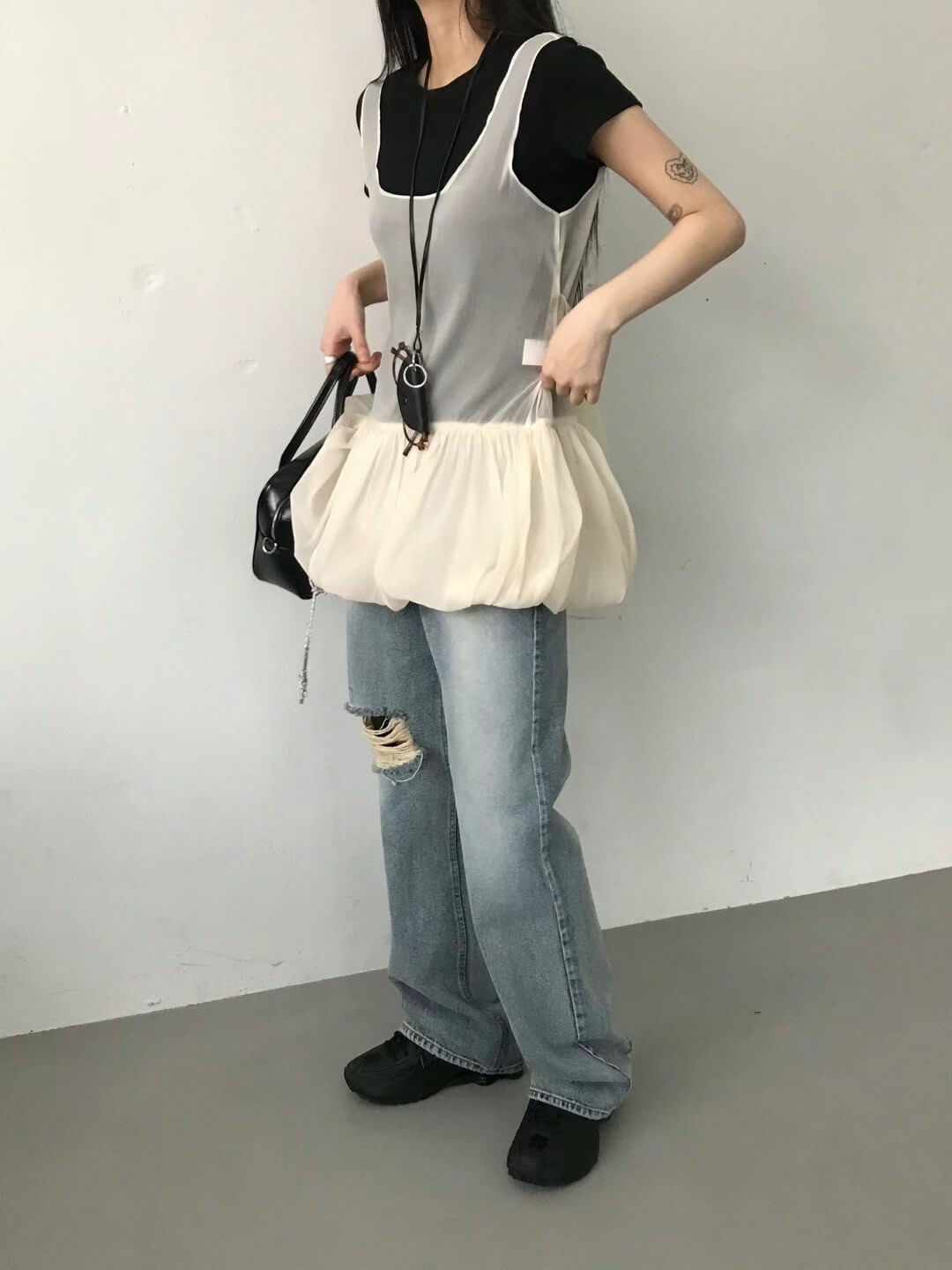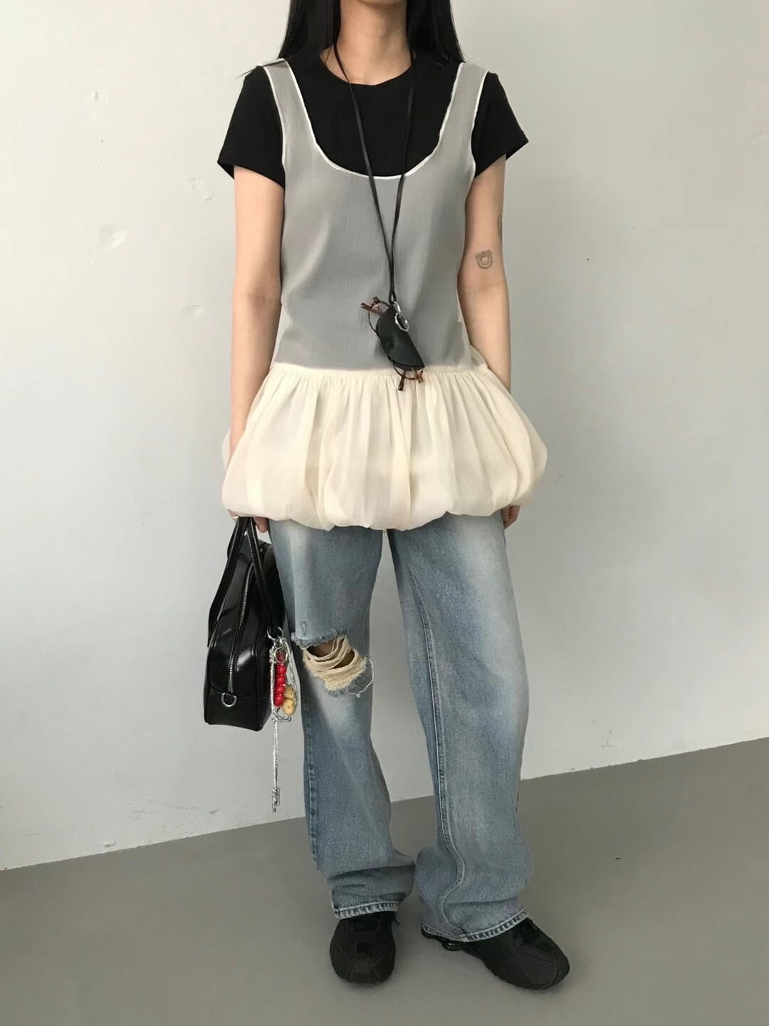 使用輕透且帶有光澤感的歐根紗所縫製而成