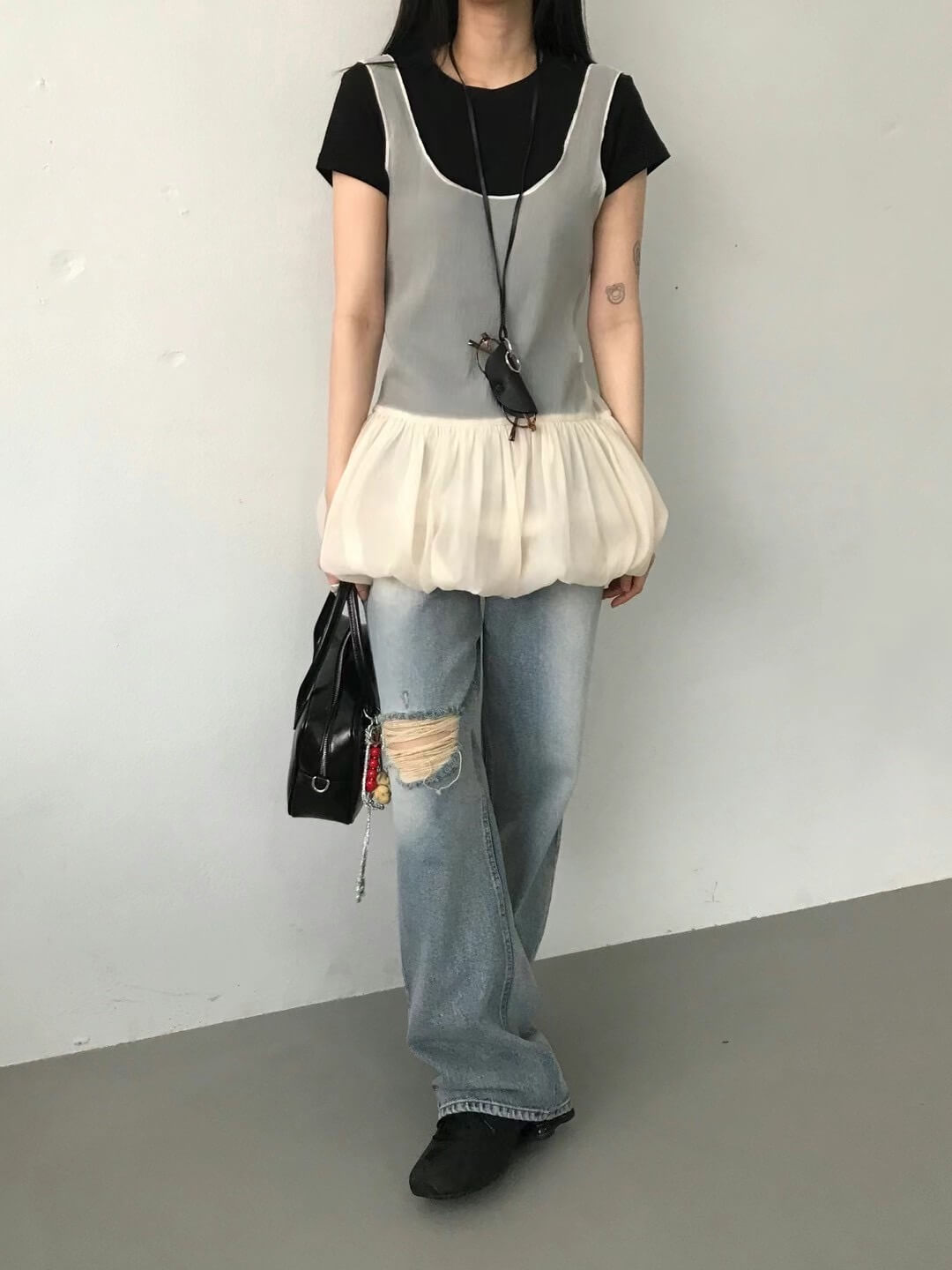 前後都是大U領口,很適合做為疊搭的單品