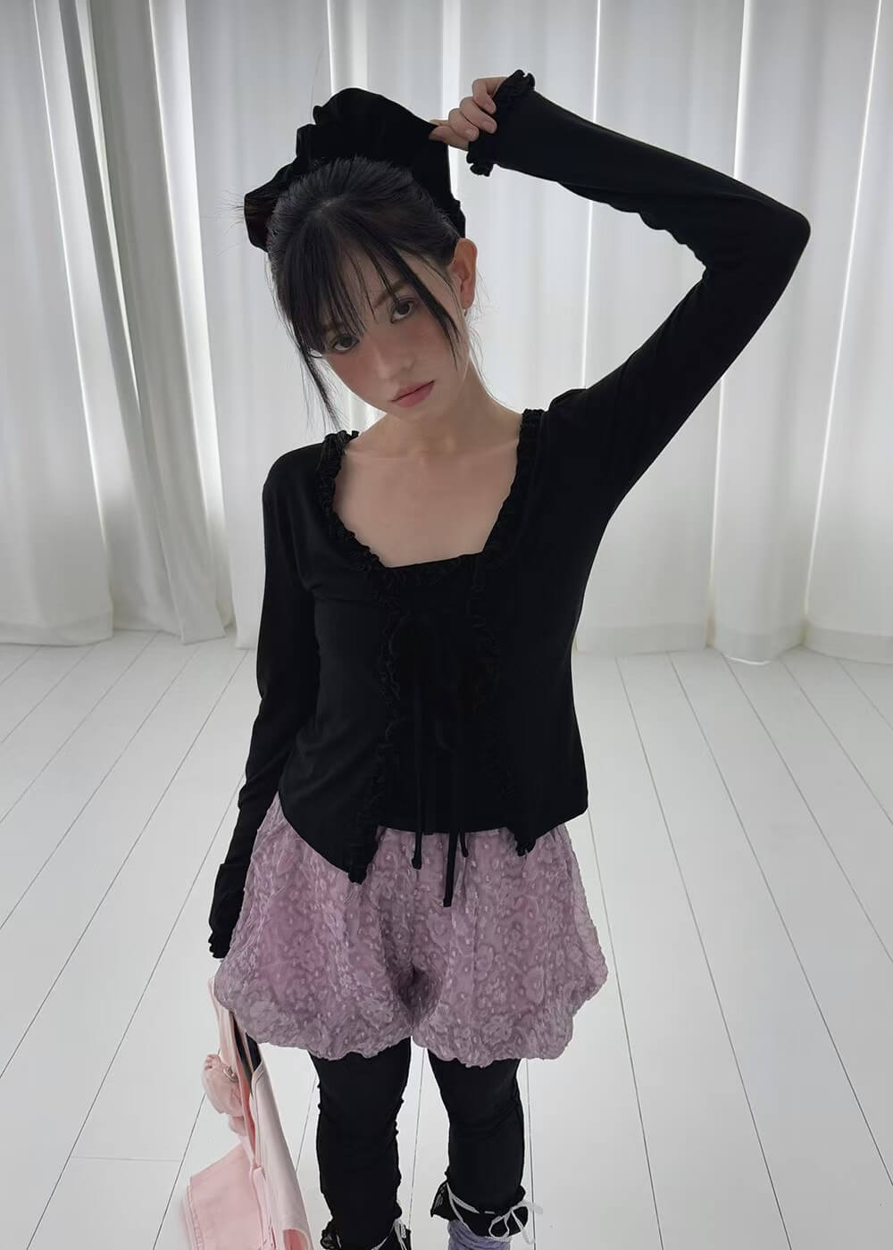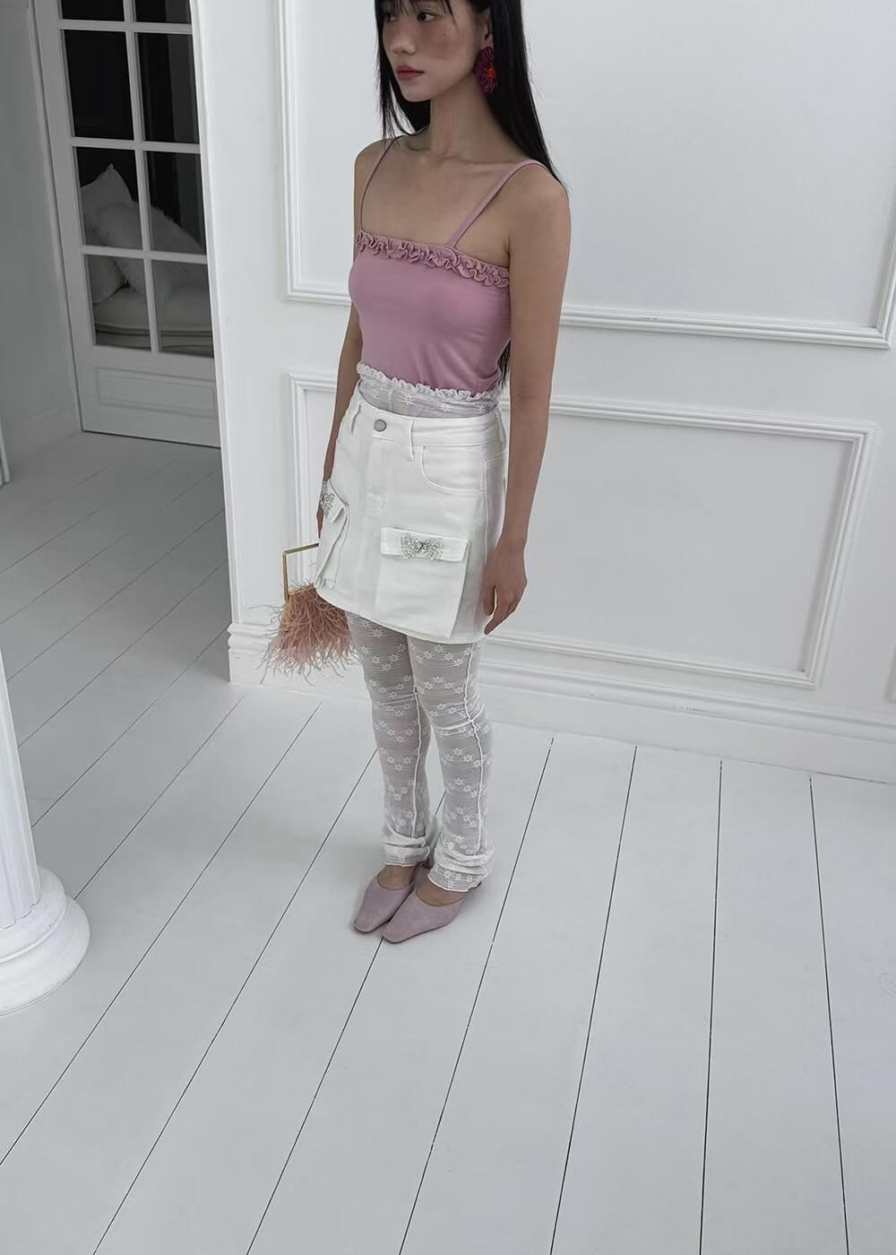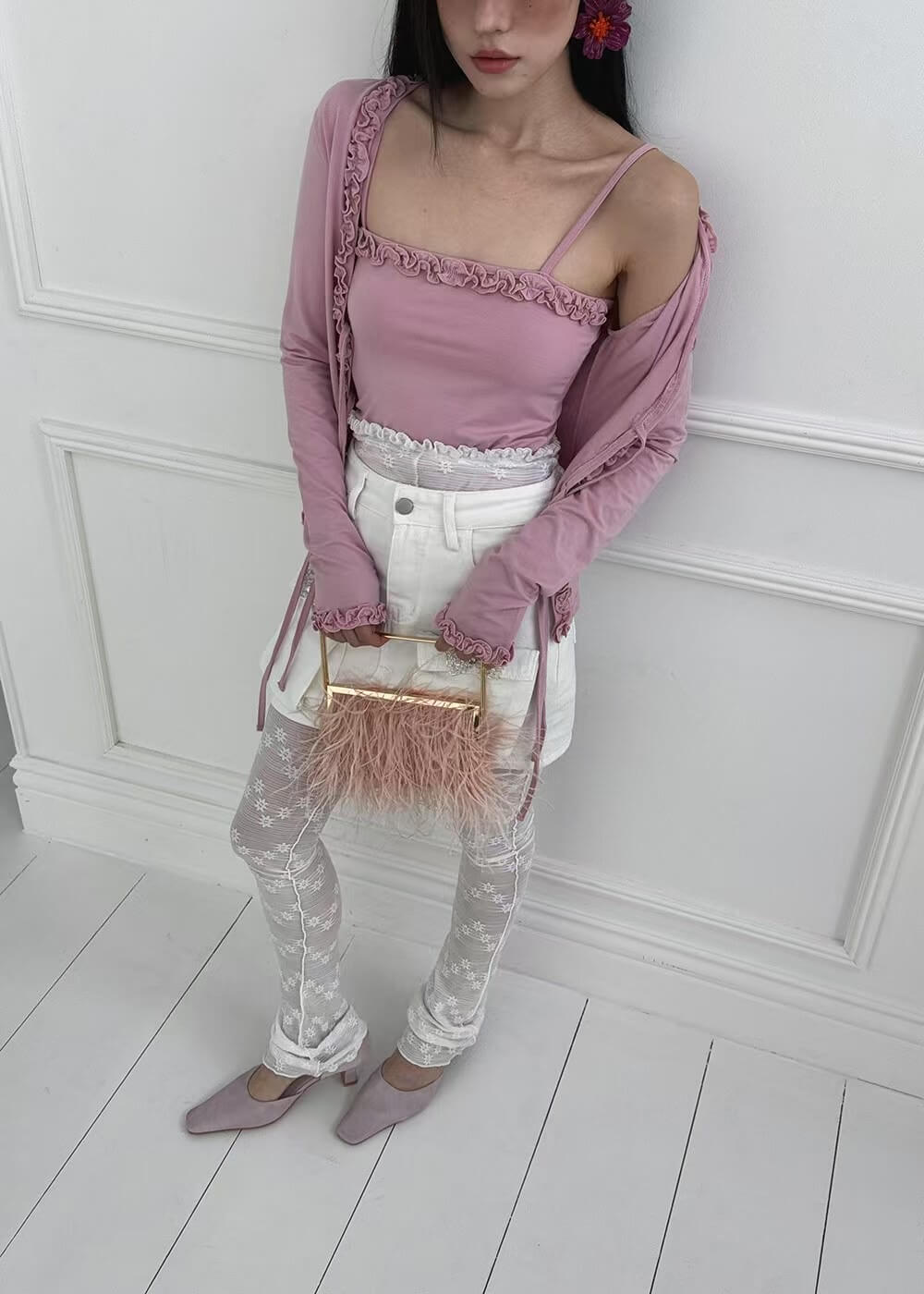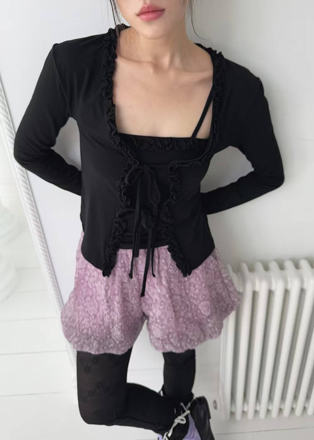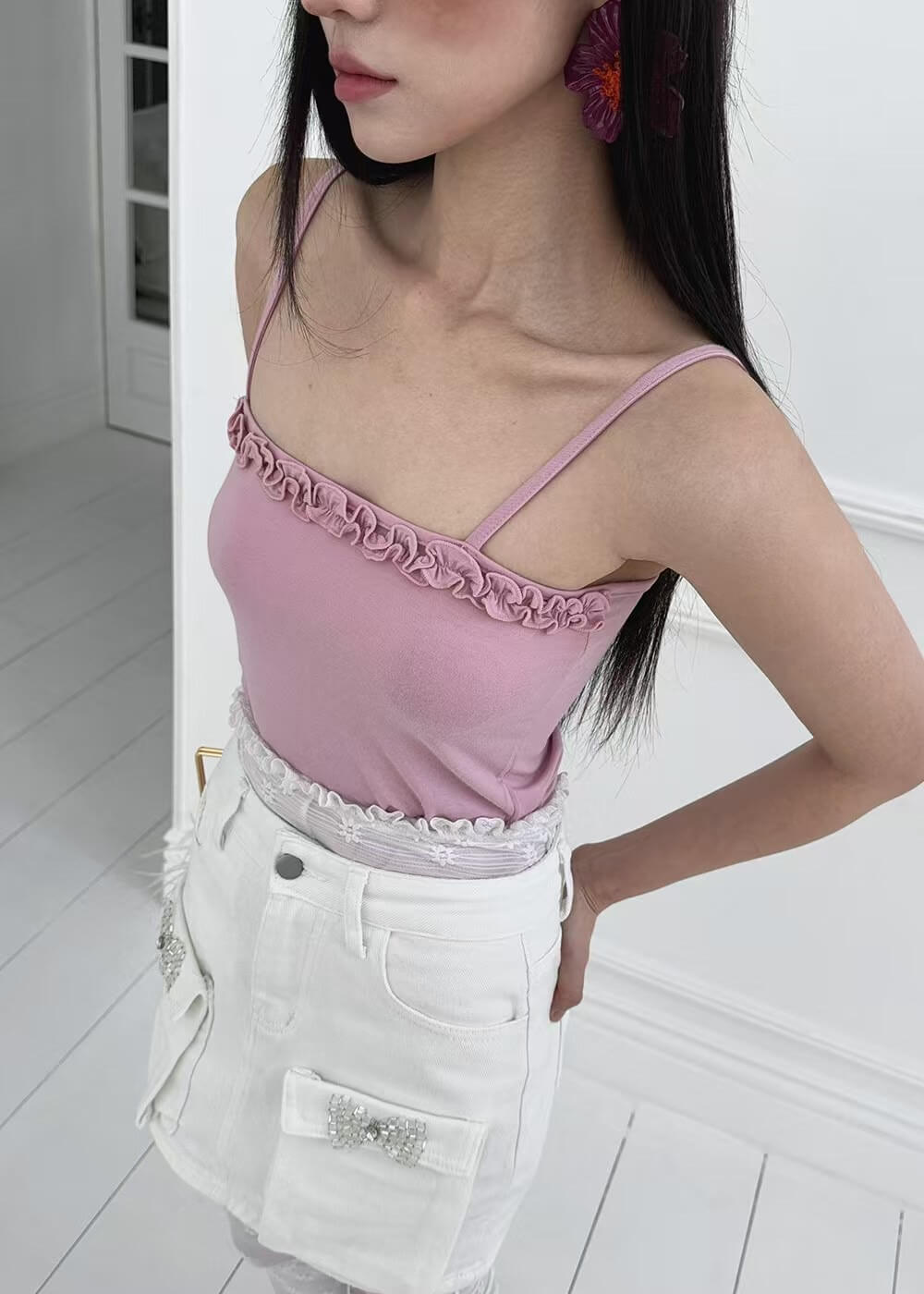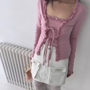 浪漫捏摺滾邊罩衫背心組