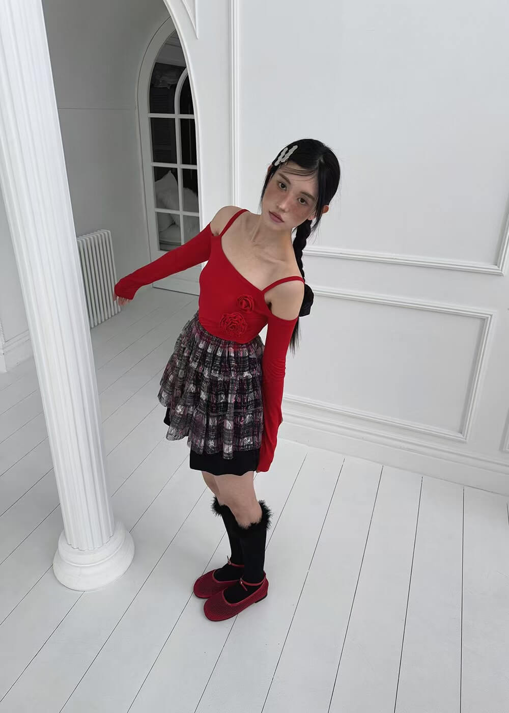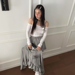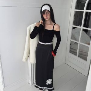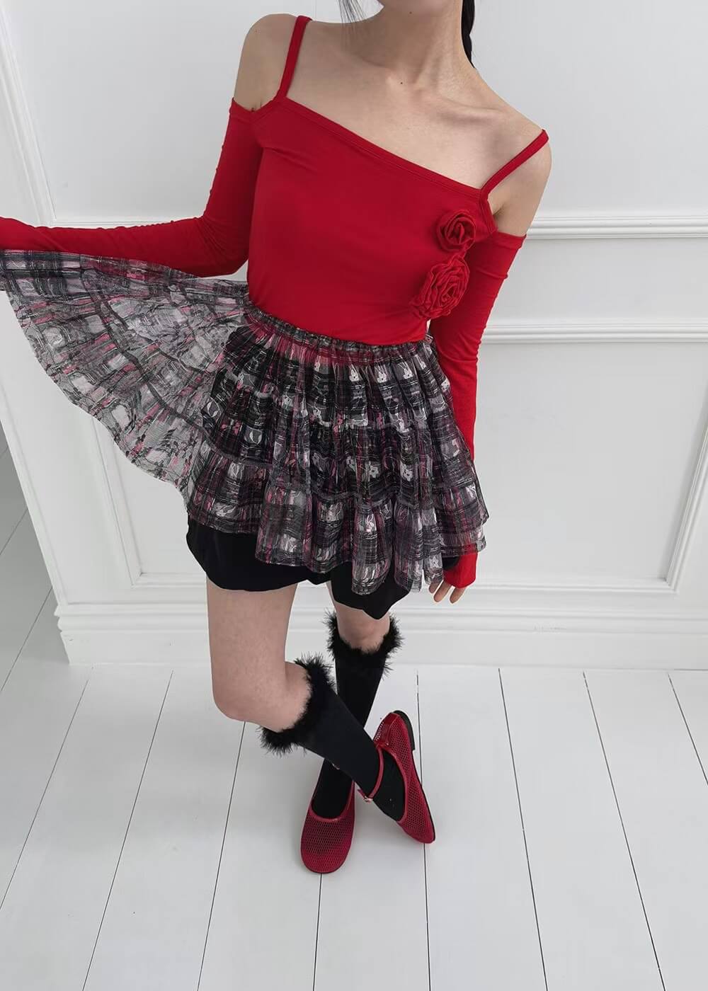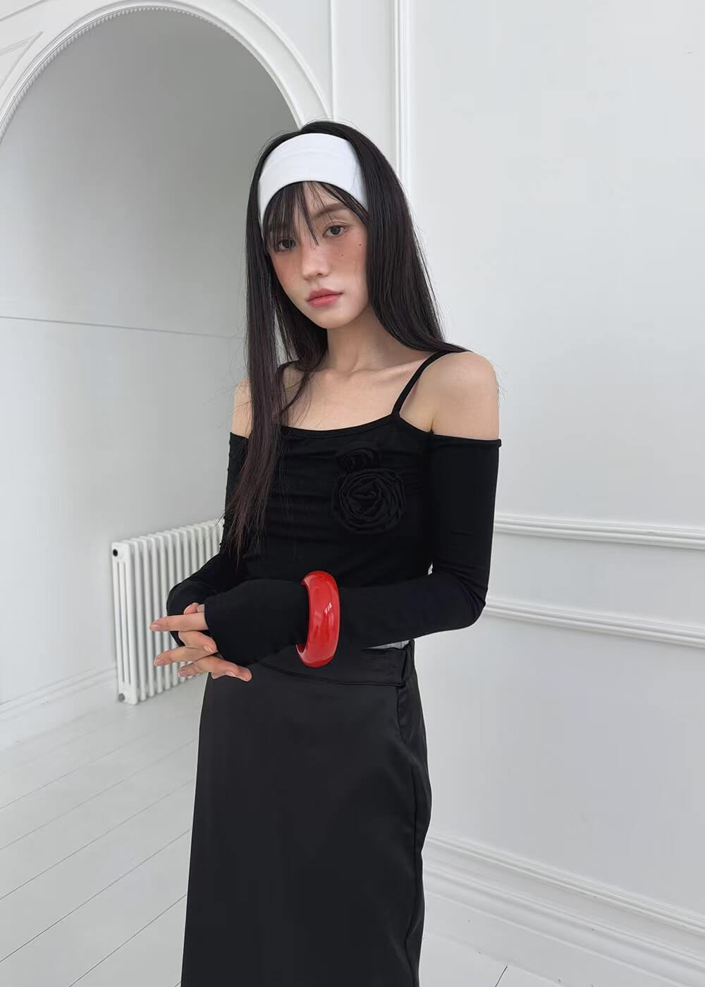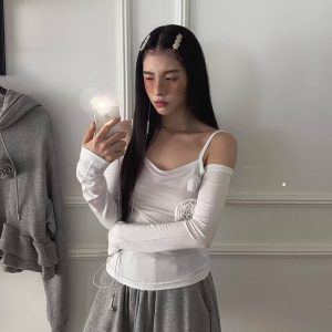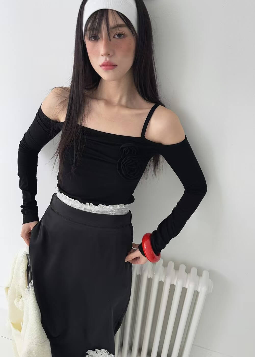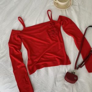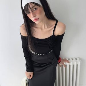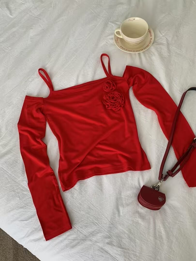 辣妹一字領玫瑰貼身上衣