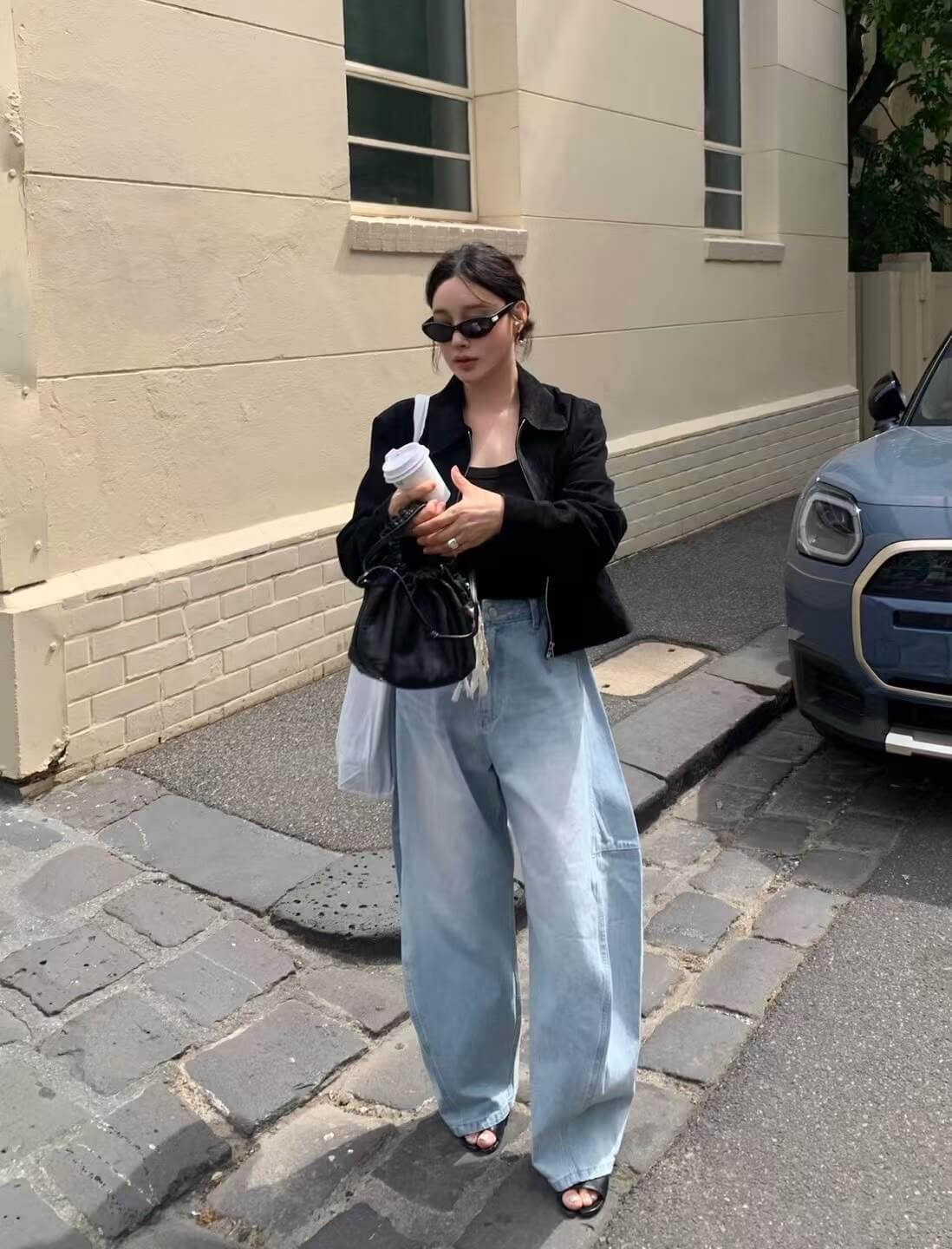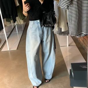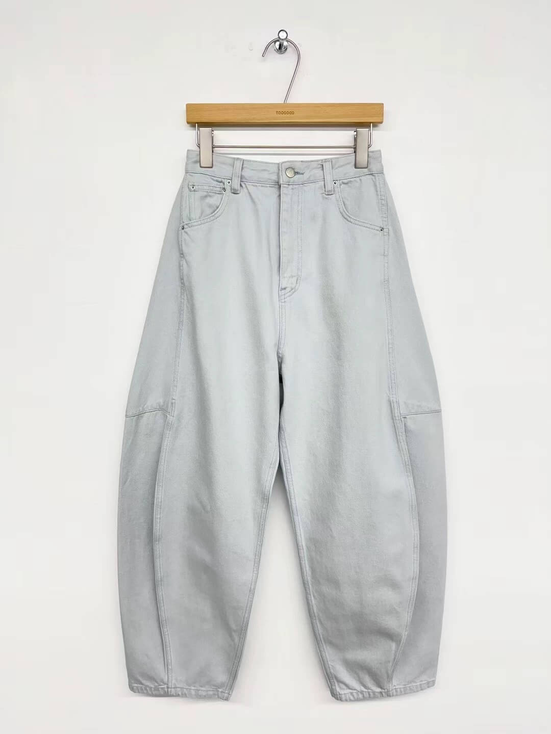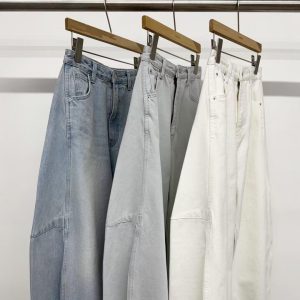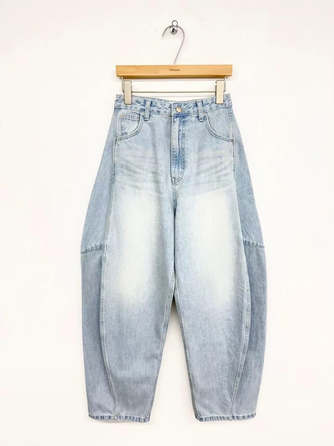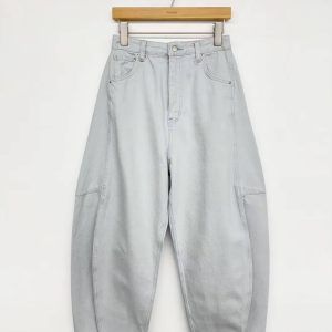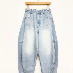 鬆馳感寬闊氣球彎刀牛仔褲