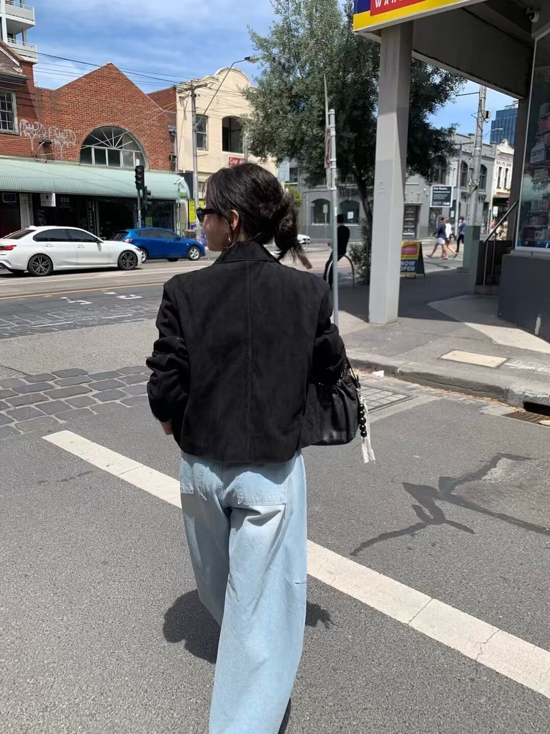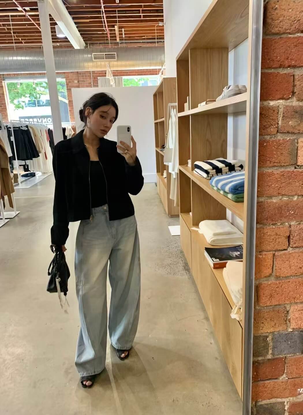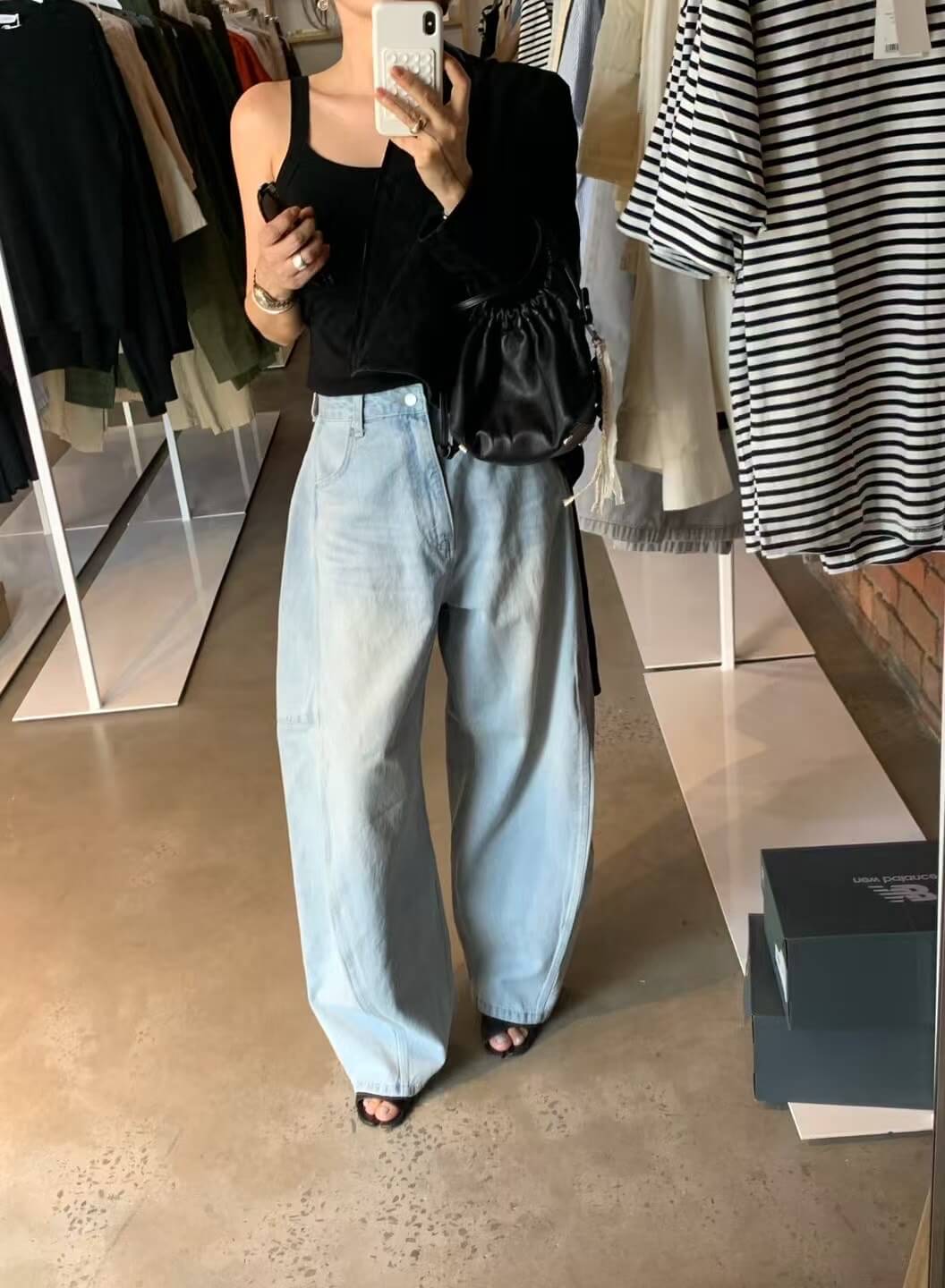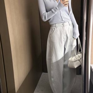 鬆馳感寬闊氣球彎刀牛仔褲