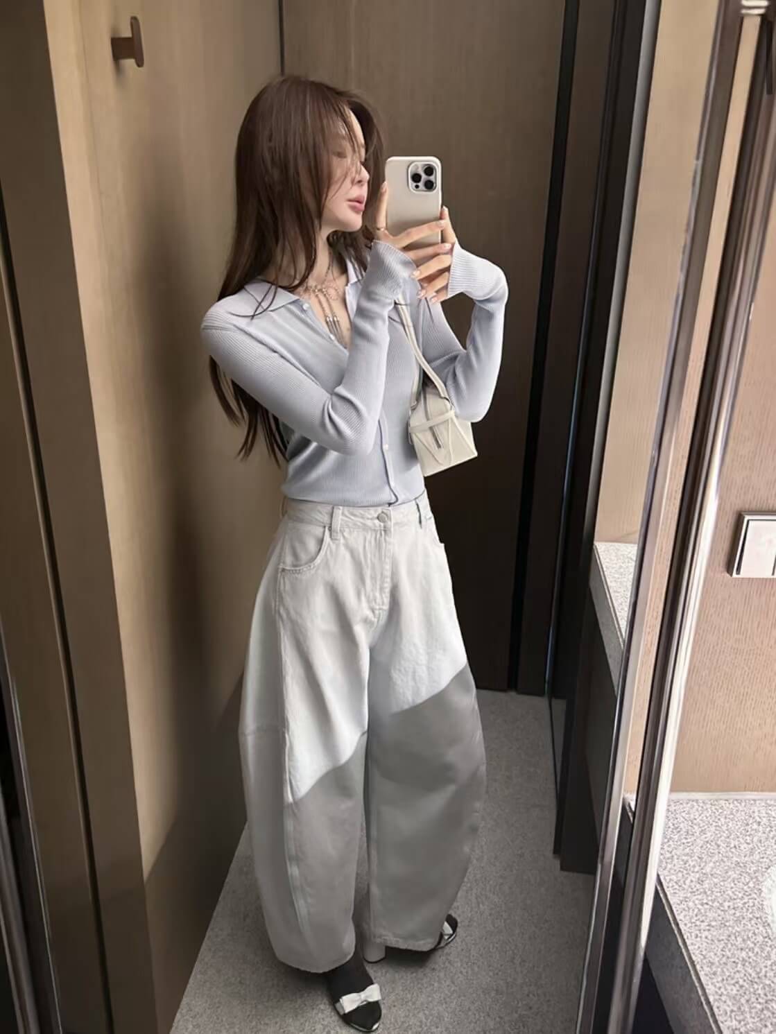 寬闊的版型,在褲管的地方又略作收斂,就像氣球一樣,還非常時髦,