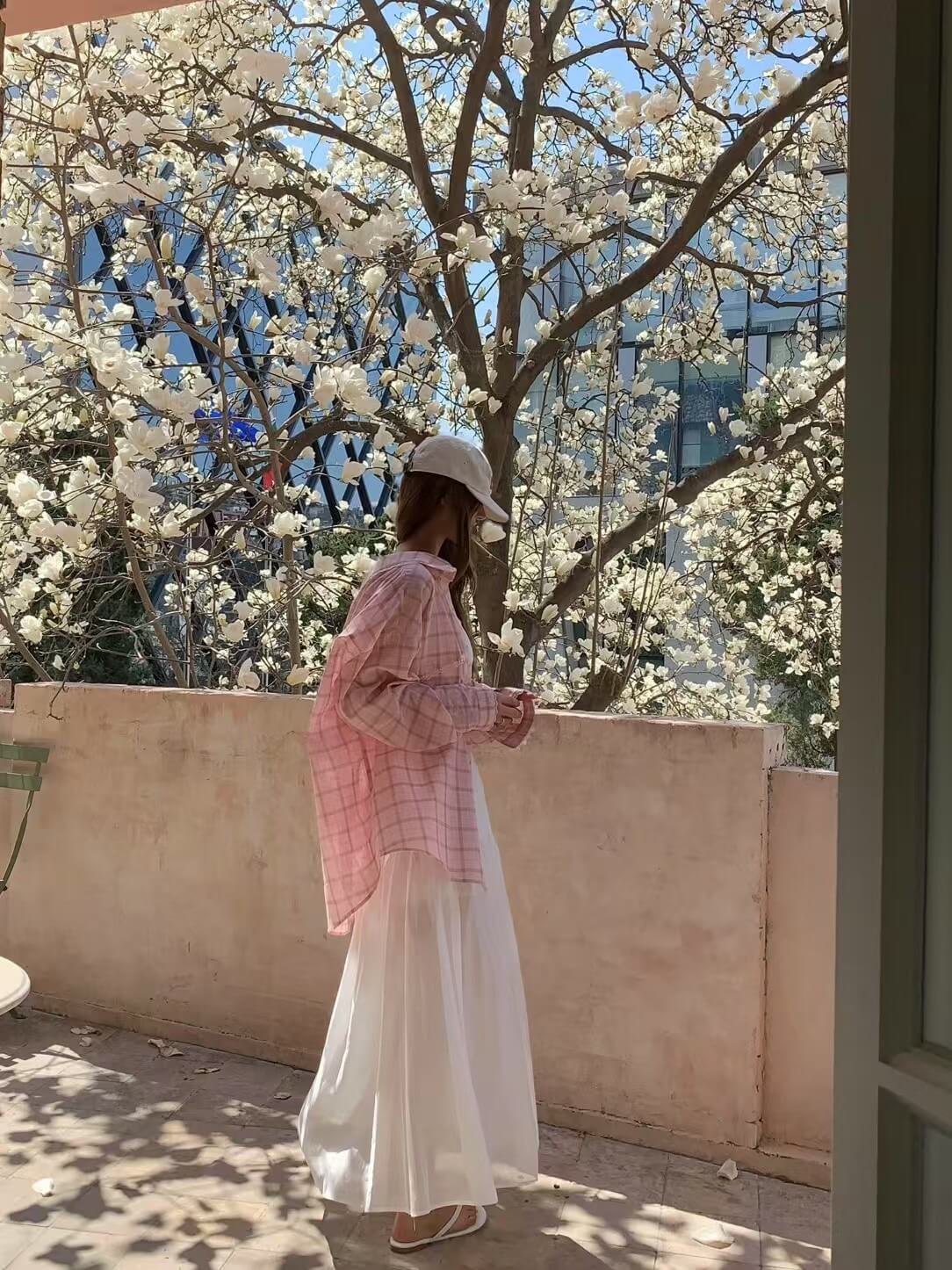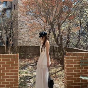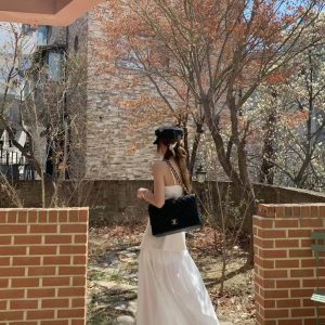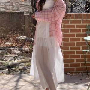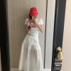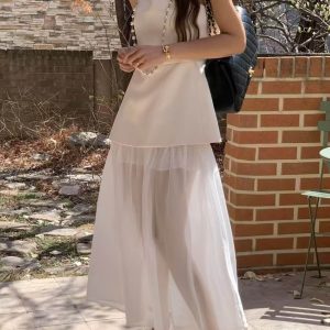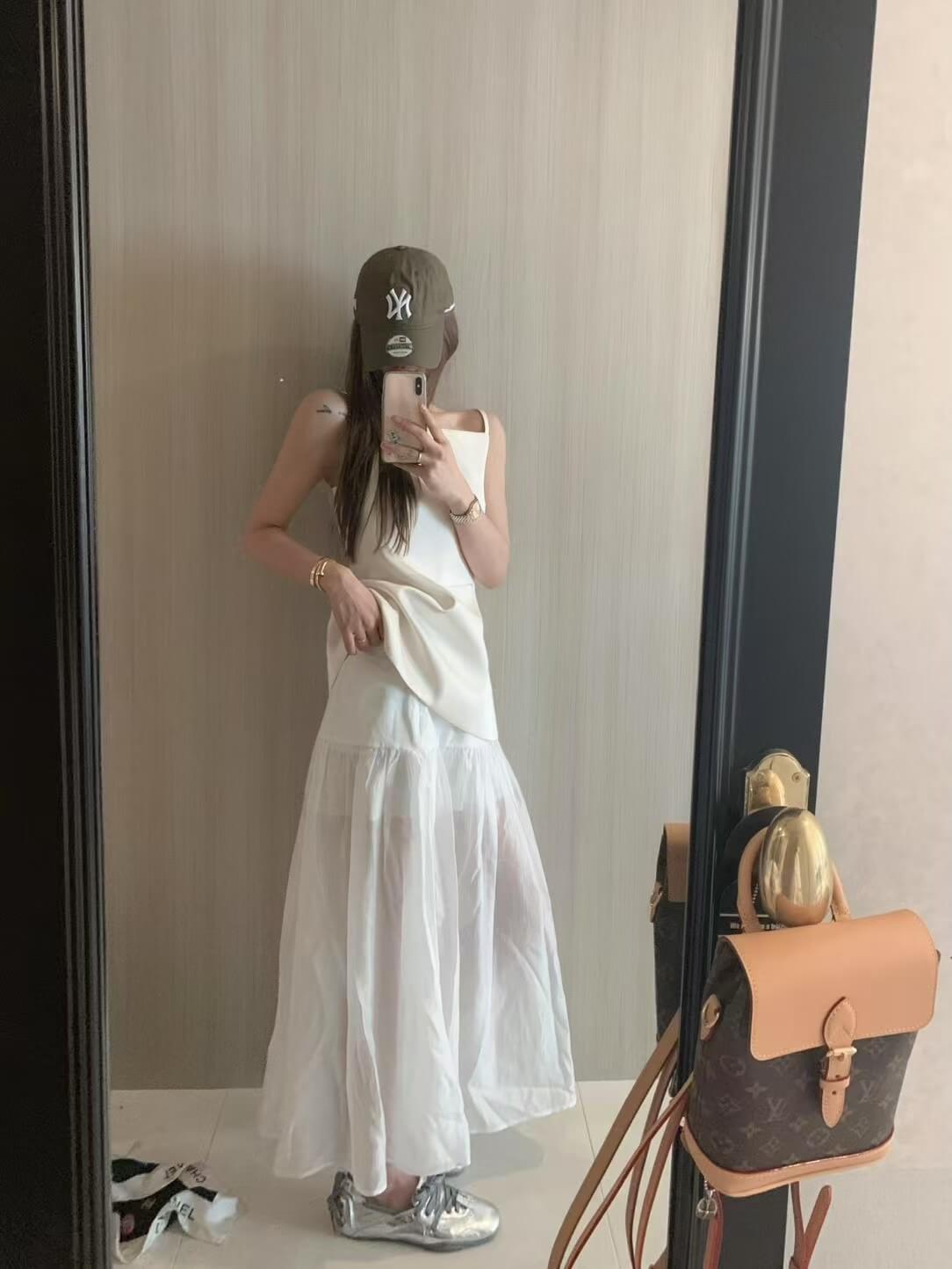 而外層採用輕透的材質,在髖骨的位置拼接可以修飾臀部的線條,隱約可以看見雙腿給人一種柔美的曚朧感。